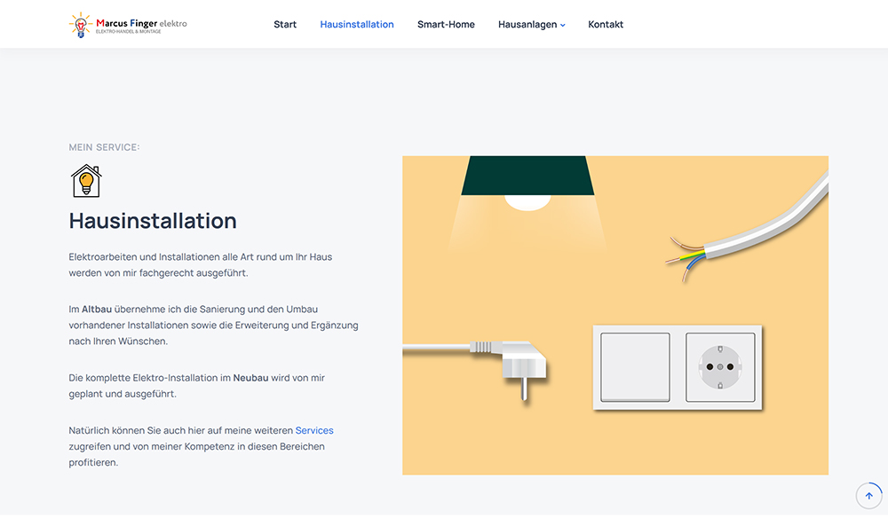Für Markus Finger elektro aus Kelkheim entstand eine Webseite mit einer Übersicht über seine verschiedenen Elektro-Services.