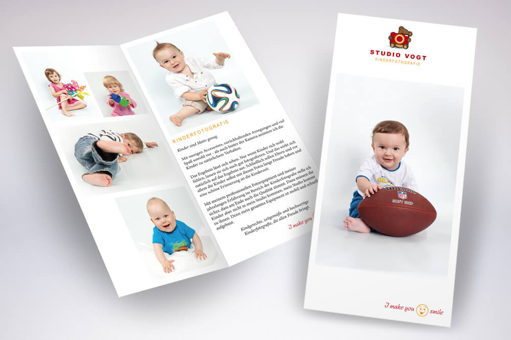 Für die Akquisition eines Fotografen in Kindergärten wurde dieser Flyer gestaltet. In regelmässigen Abständen wird er mit neuen Fotos bestückt und in kleiner Auflage nachgedruckt.
